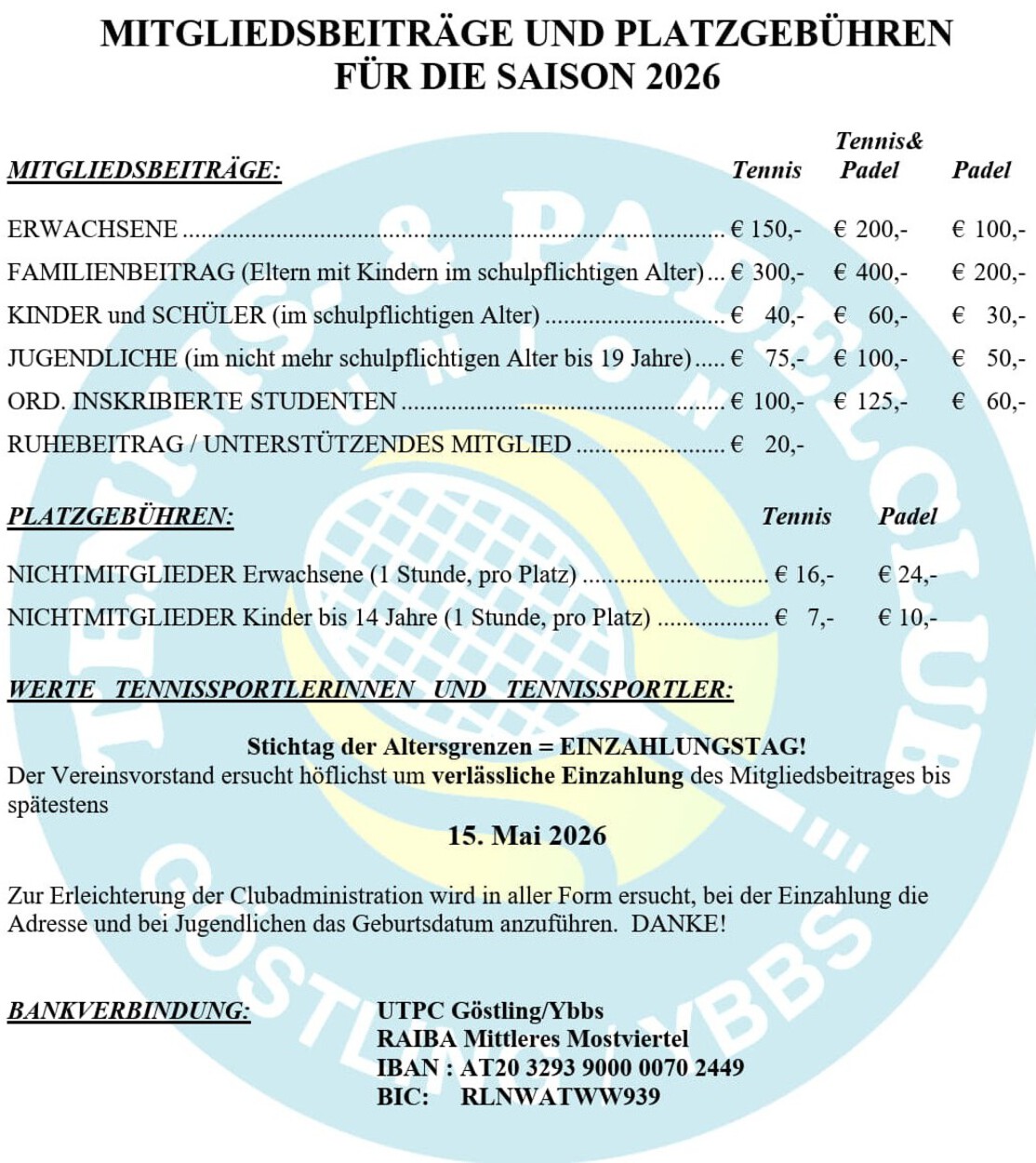 Mitglieds- & Platzgebühren